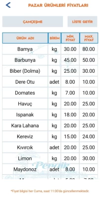 Bu uygulamamızla pazarlarda oluşan fiyatları ve fiyat değişimlerini anlık olarak görüntüleyerek vatandaşımız için tasarruf imkanı oluştururken eş zamanlı olarak pazar fiyatlarını denetliyoruz.